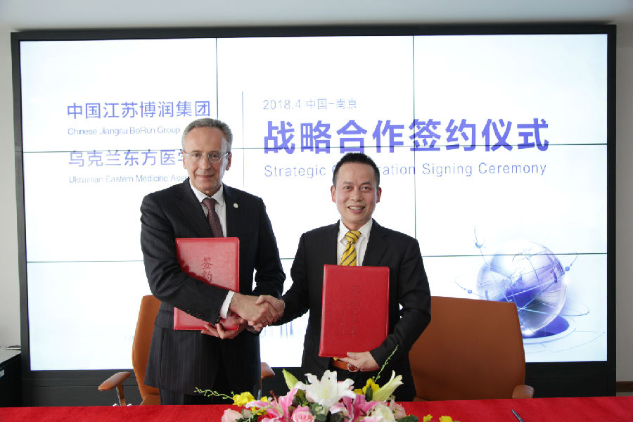 乌克兰东方医学协会主席萨姆索诺夫·亚历山大与江苏博润集团董事长陈国森分别代表双方,正式签署战略合作协议,双方希望,在今后的发展上能够相互融合、齐心协力,共谋国际化发展大计。